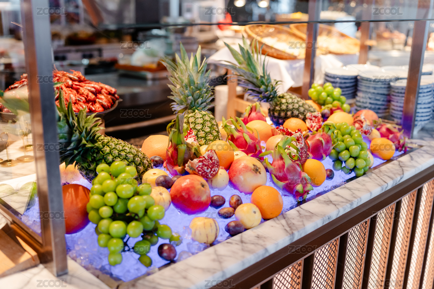 高档星级酒店自助餐的铁板烧烤烤肉餐台