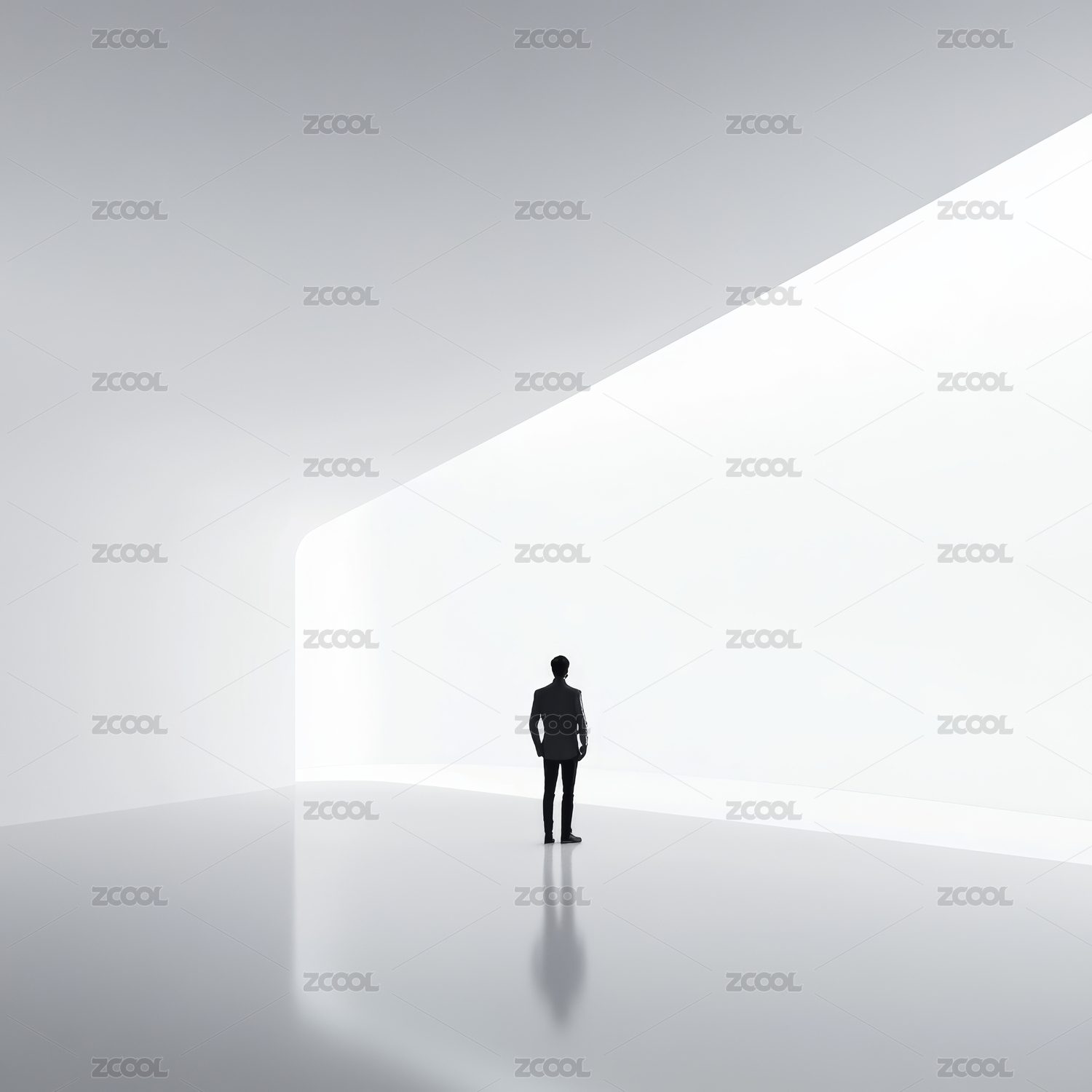 蓝调空间里的人影