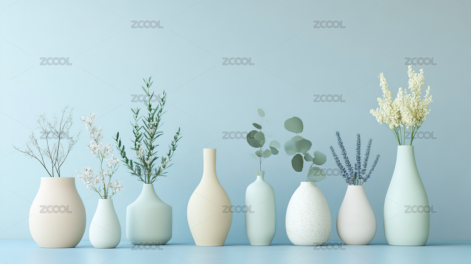 浅色系陶瓷花瓶与干花组合
