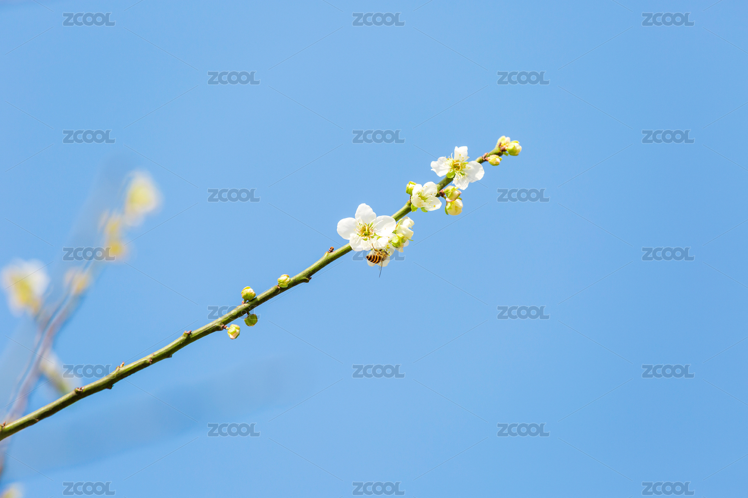 蓝色天空与白梅花