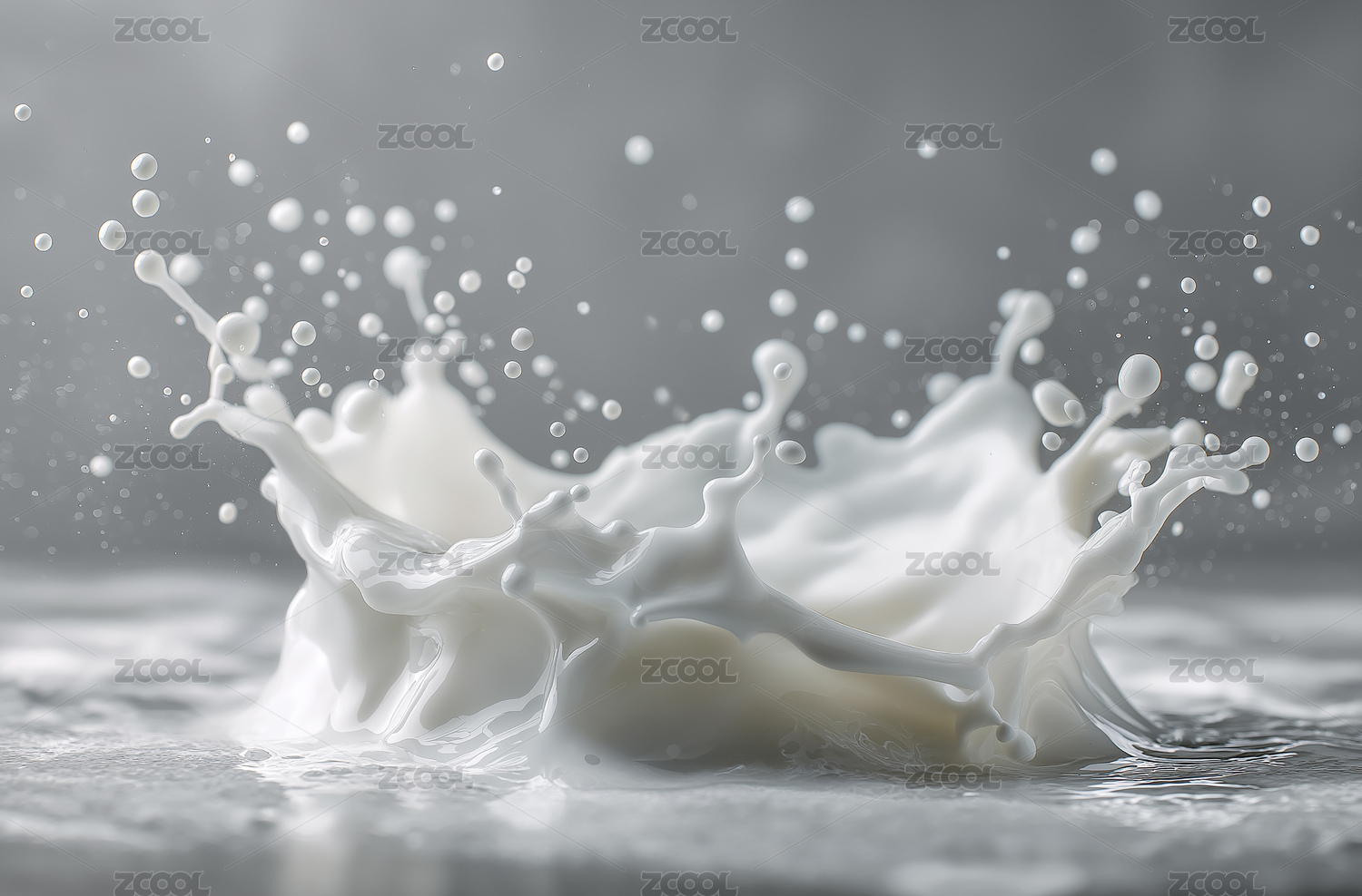 灰色背景下白色牛奶飞溅起大量水滴气