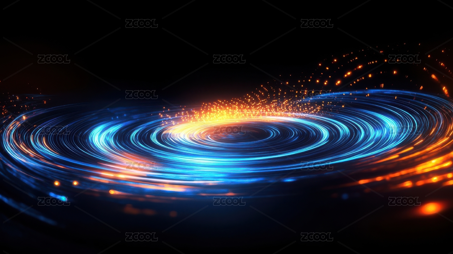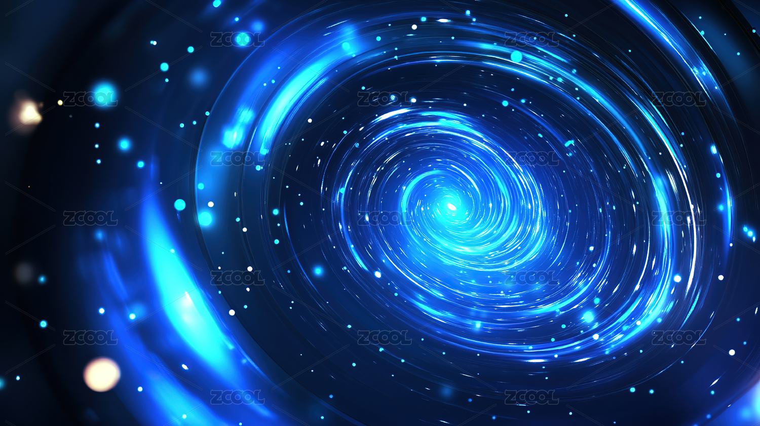 蓝色抽象旋绕光圈与光点