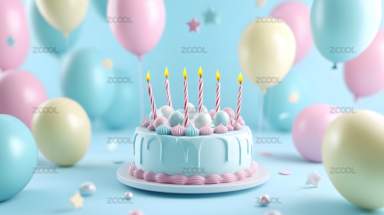 生日,彩旗,气球,蛋糕,礼盒,彩带,蜡烛,粉红色,装饰,庆祝