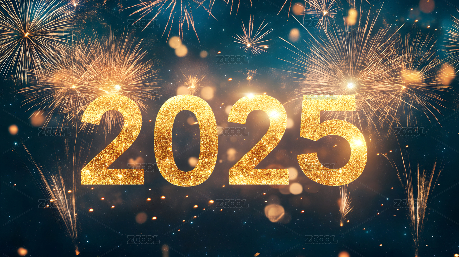 新年, 2025, 新年快乐, 庆祝, 节日, 喜庆, 金色, 数字, 璀璨, 烟火