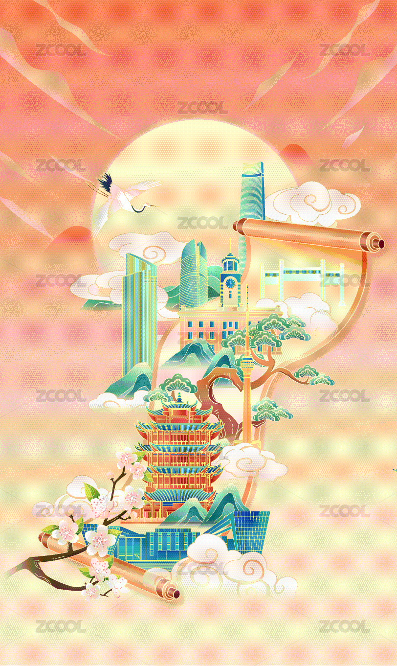 国风画卷武汉城市建筑矢量插画海报