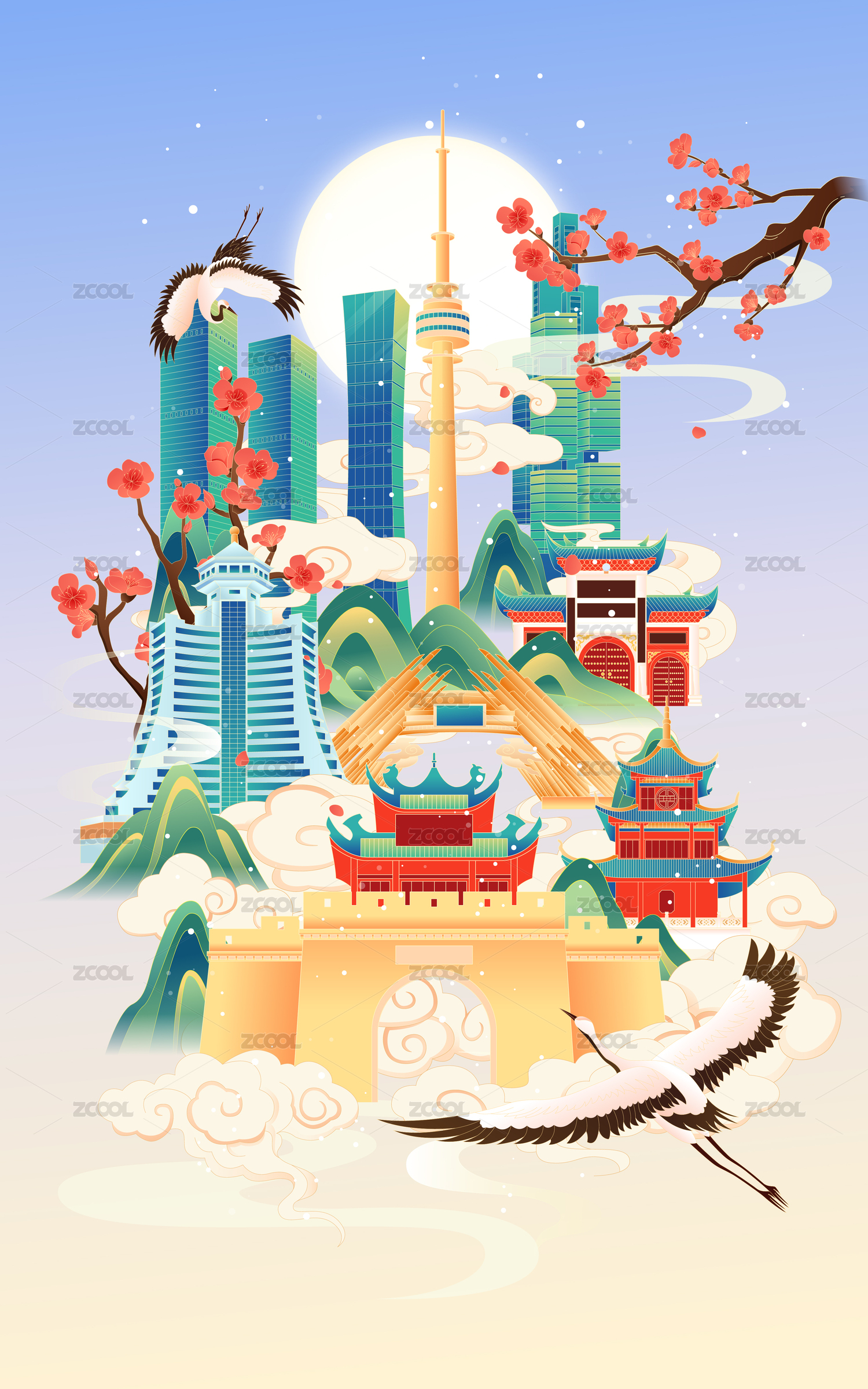 国风画卷南京城市建筑矢量插画海报