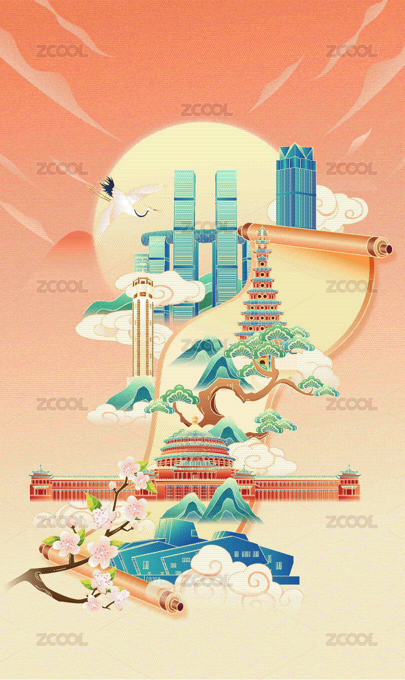 国风画卷郑州城市建筑矢量插画海报