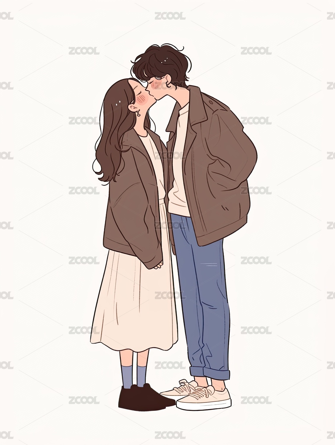 浪漫情人节亲吻的情侣甜蜜爱情粉色简笔画
