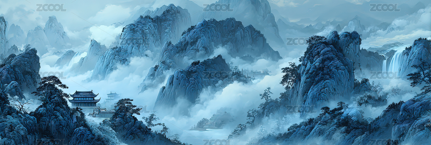 仙境,宁静,艺术,水彩,3D,奇幻,背景,壁纸,山水画,古典