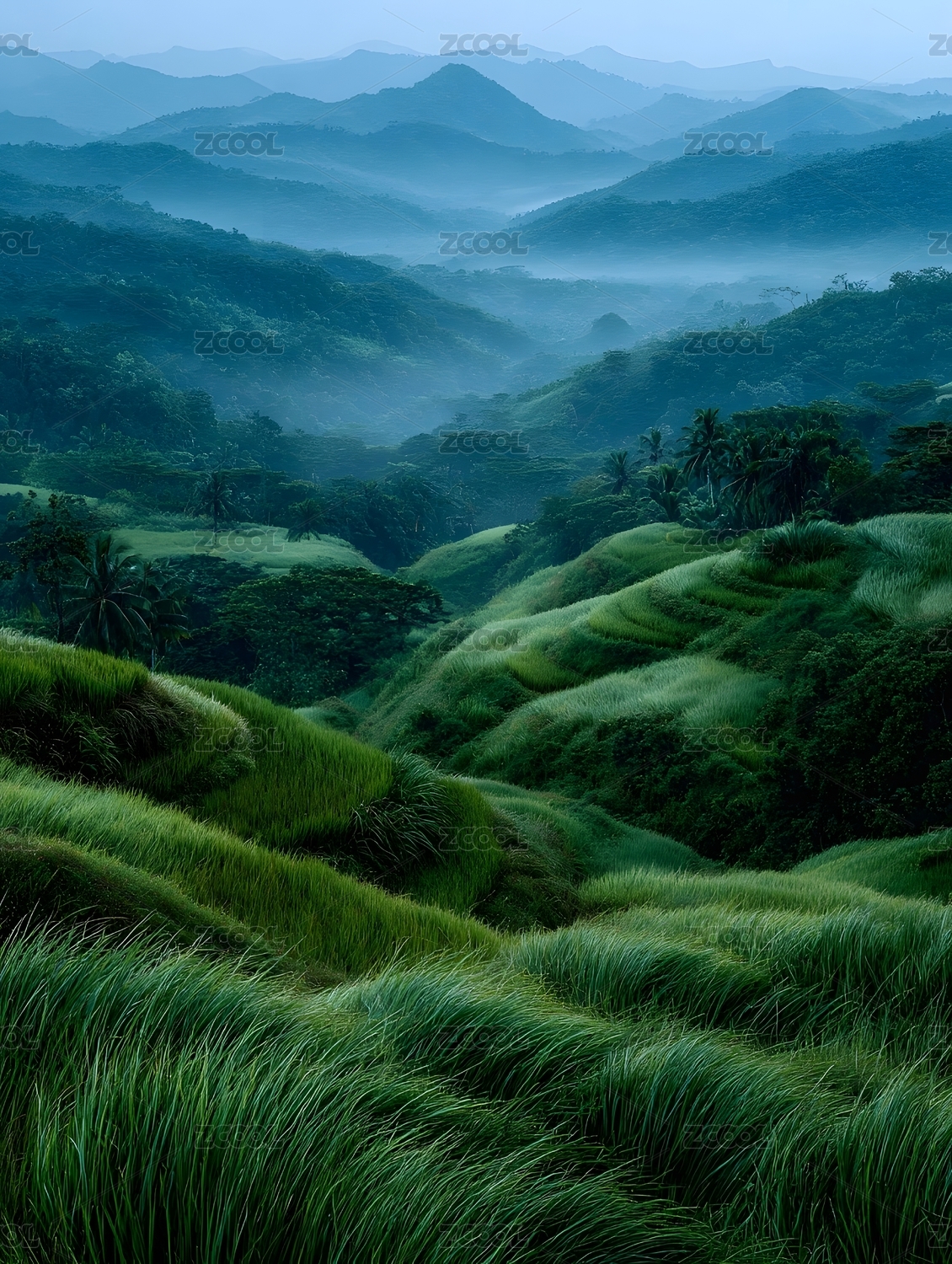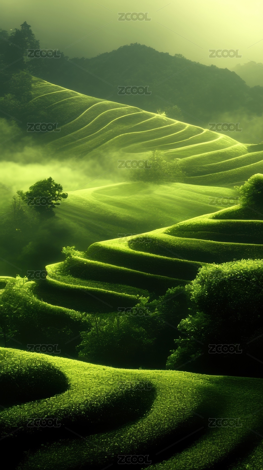 宁静,山脉,山峦,云雾,绿色,自然,风景,远山,中国,平静