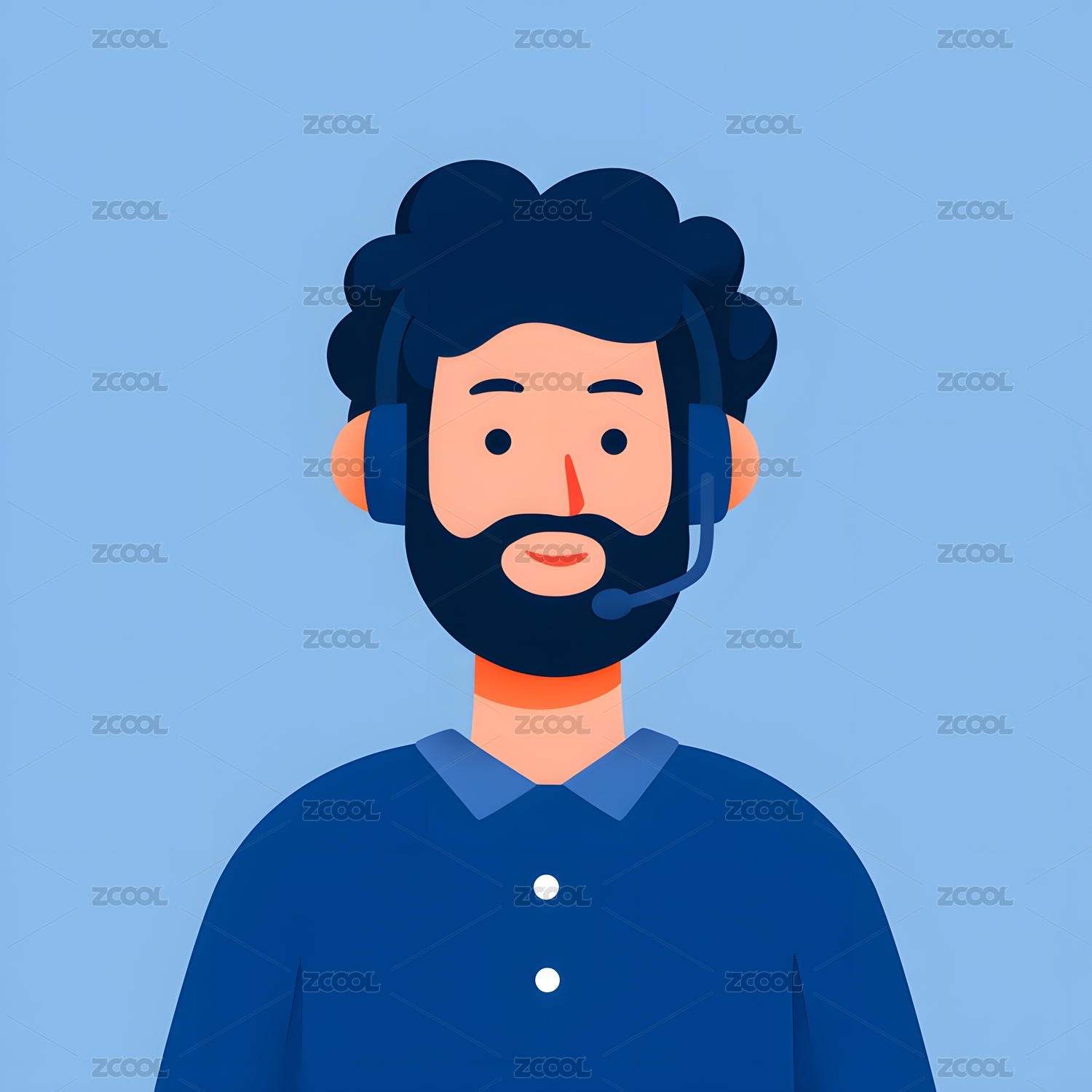 蓝色背景戴耳机男性客服插画素材