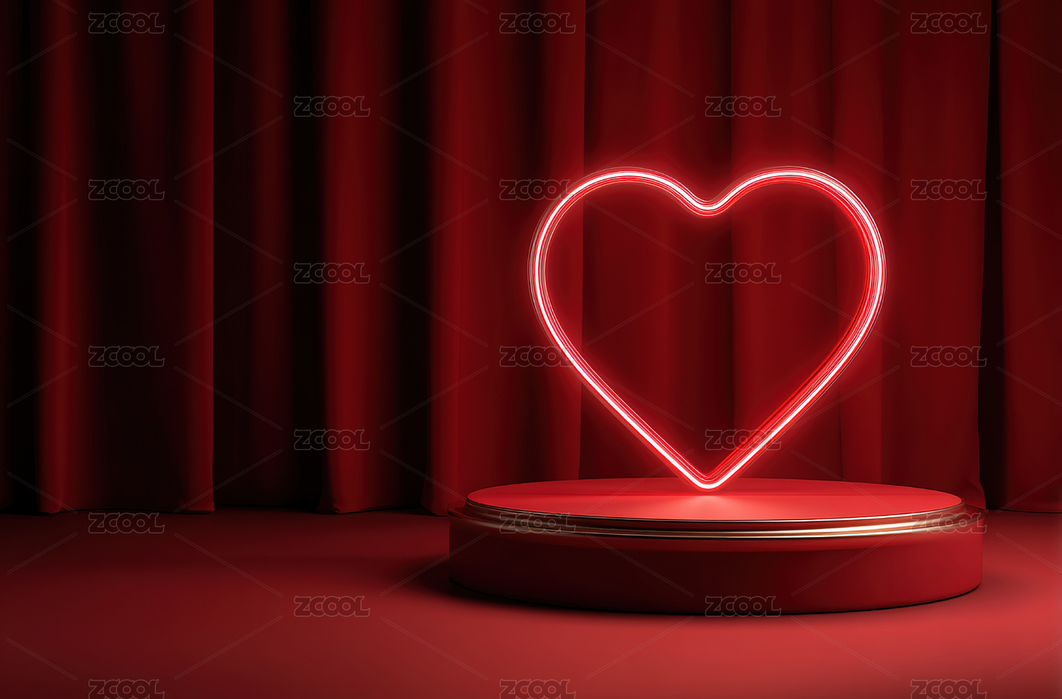 3D发光爱心红色圆形电商产品展台