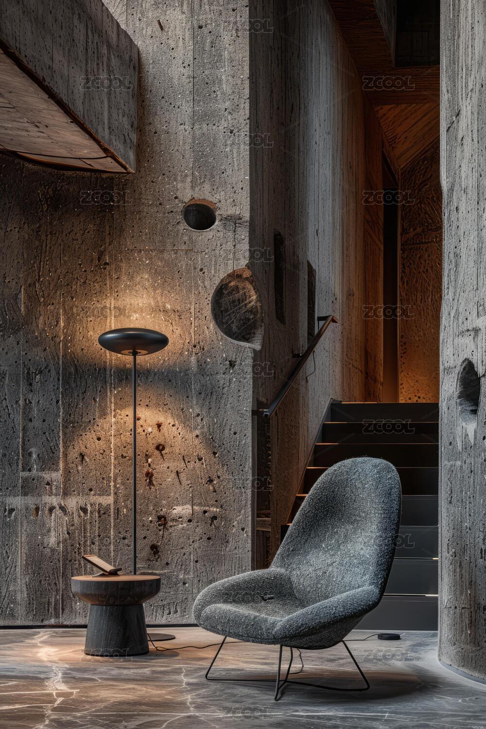 现代简约风格的混凝土墙和楼梯