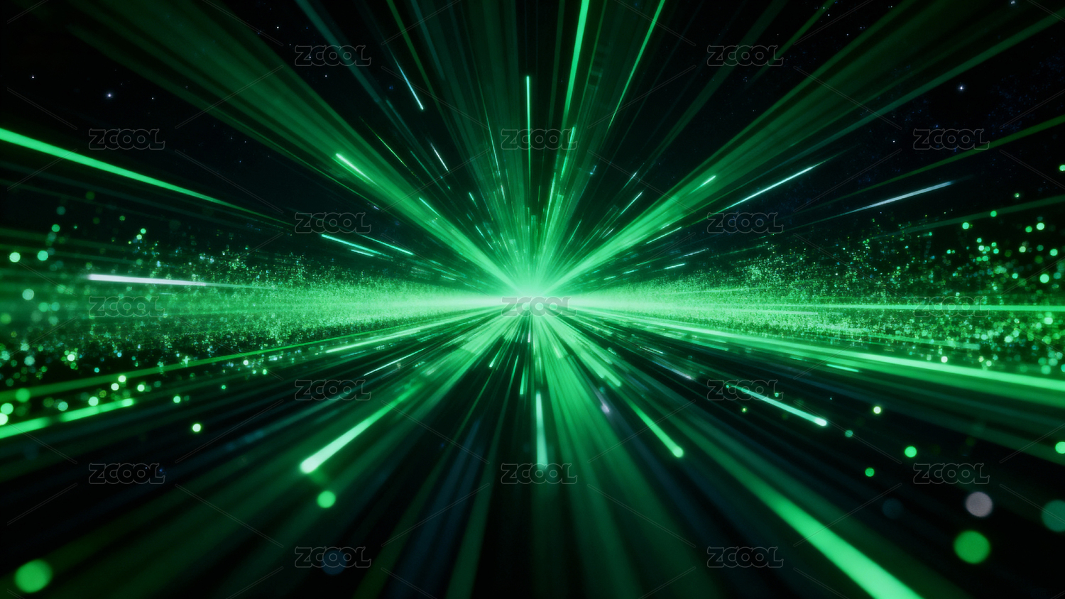充满活力的绿色光线爆发景象