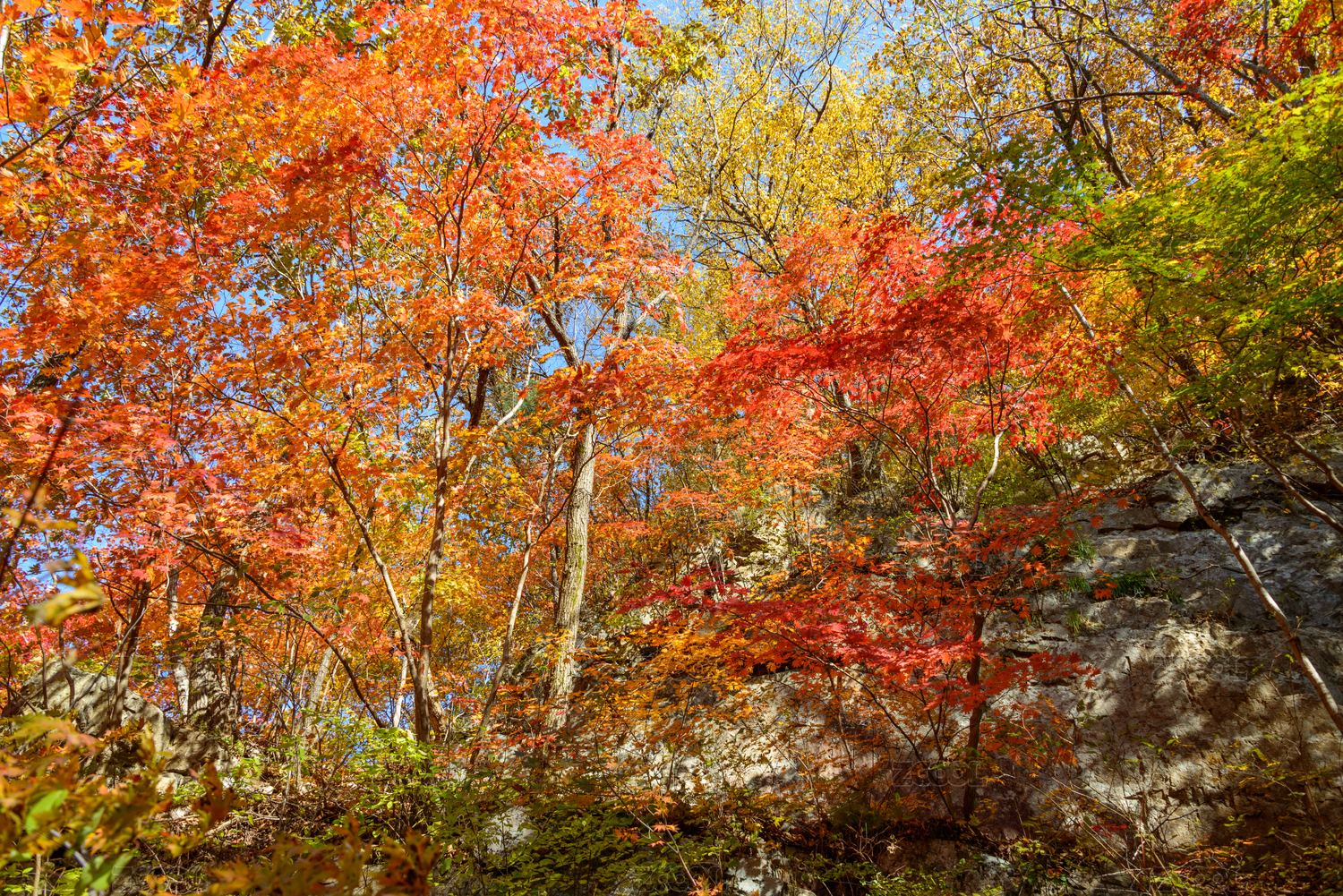 沈阳本溪老边沟,秋日山林红叶枫树景观