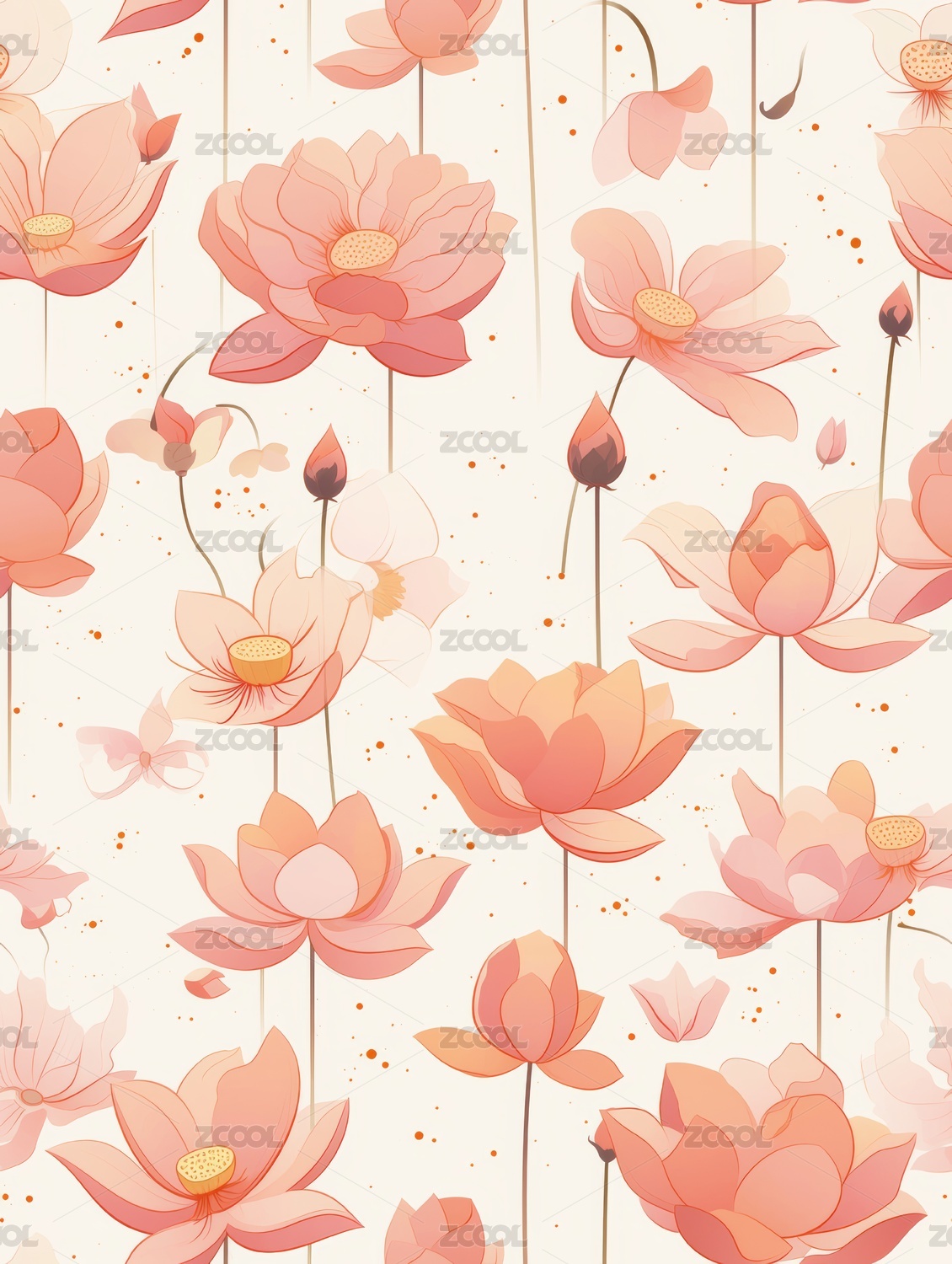荷花 印花图案 插画 无缝图