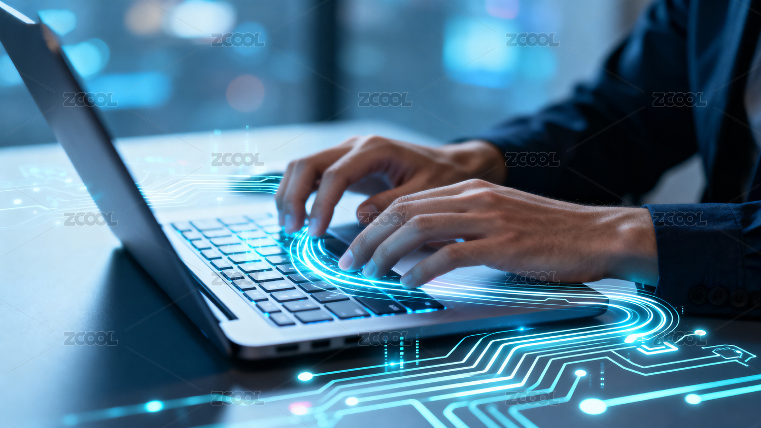 酷炫夜晚数字办公双手键盘代码背景