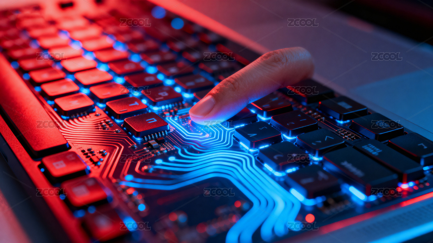 科技感键盘与电路光影