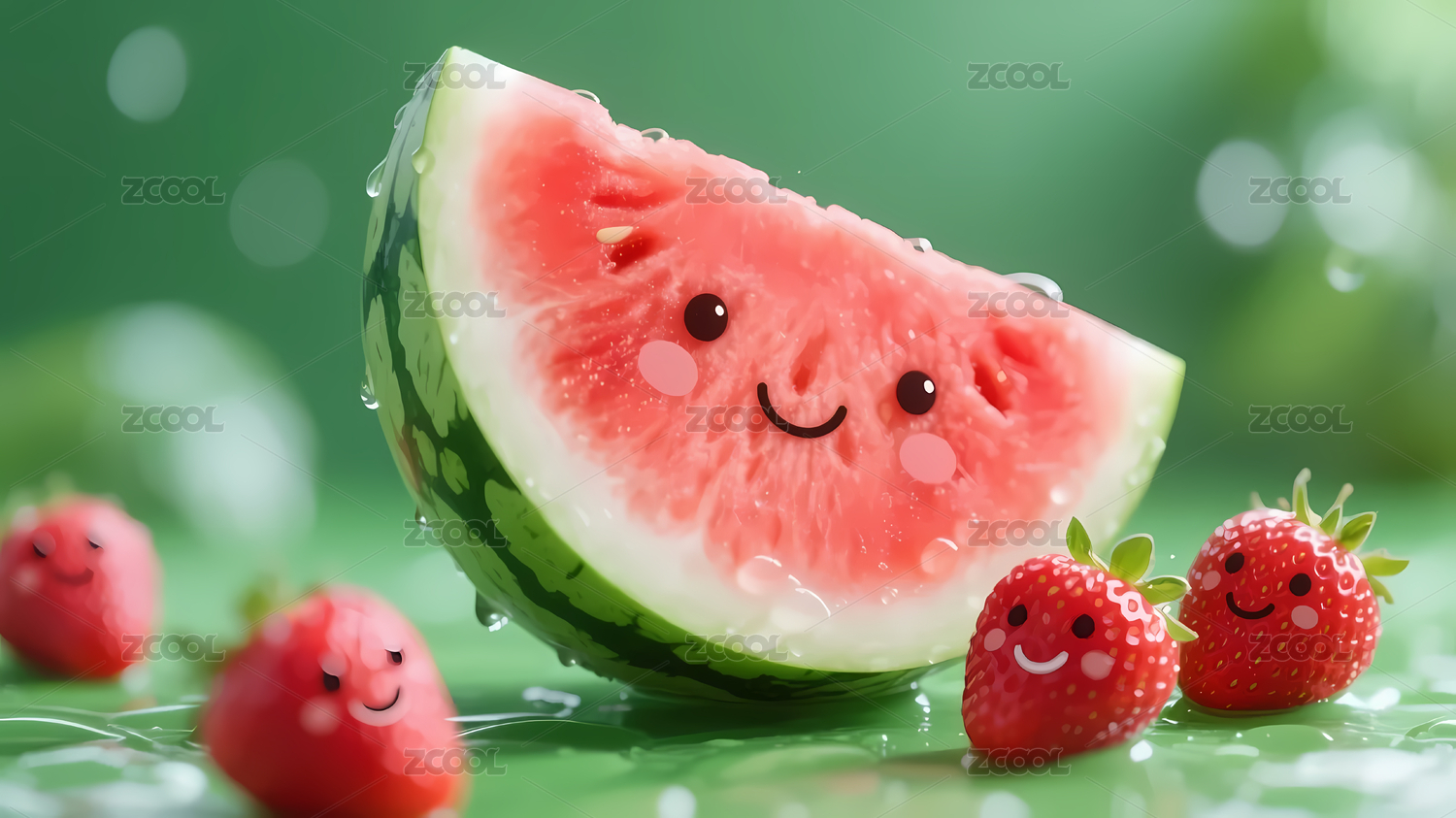 可爱的拟人化卡通西瓜背景