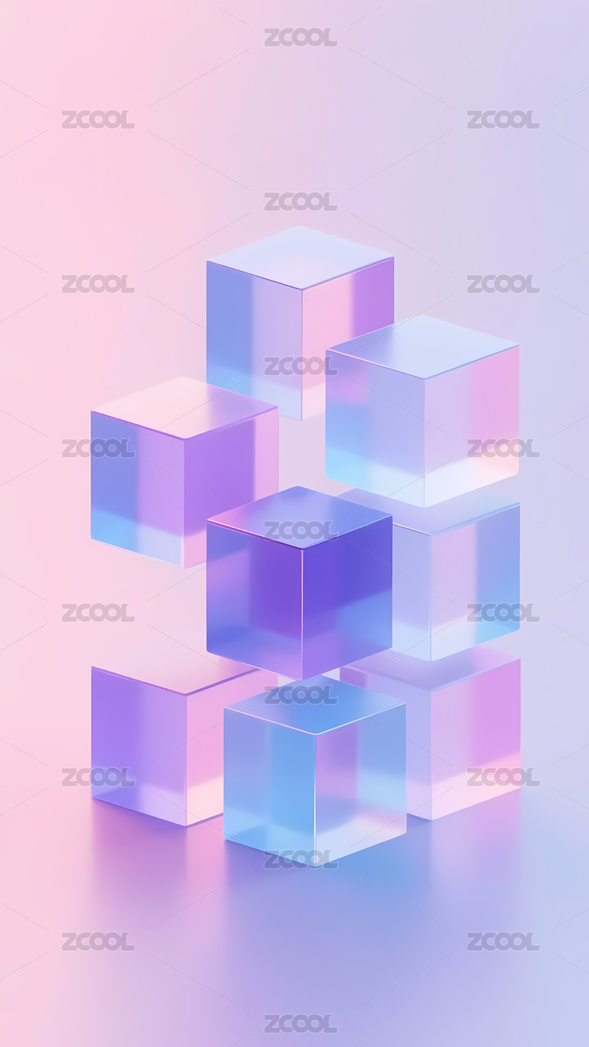 粉色,立方体,蓝色,光影,堆叠,色彩,立体,悬浮,几何,渐变