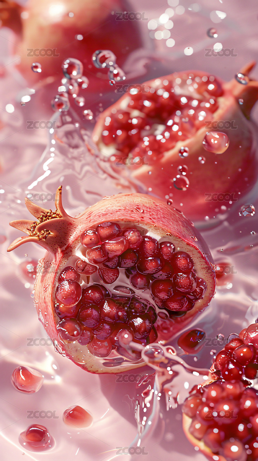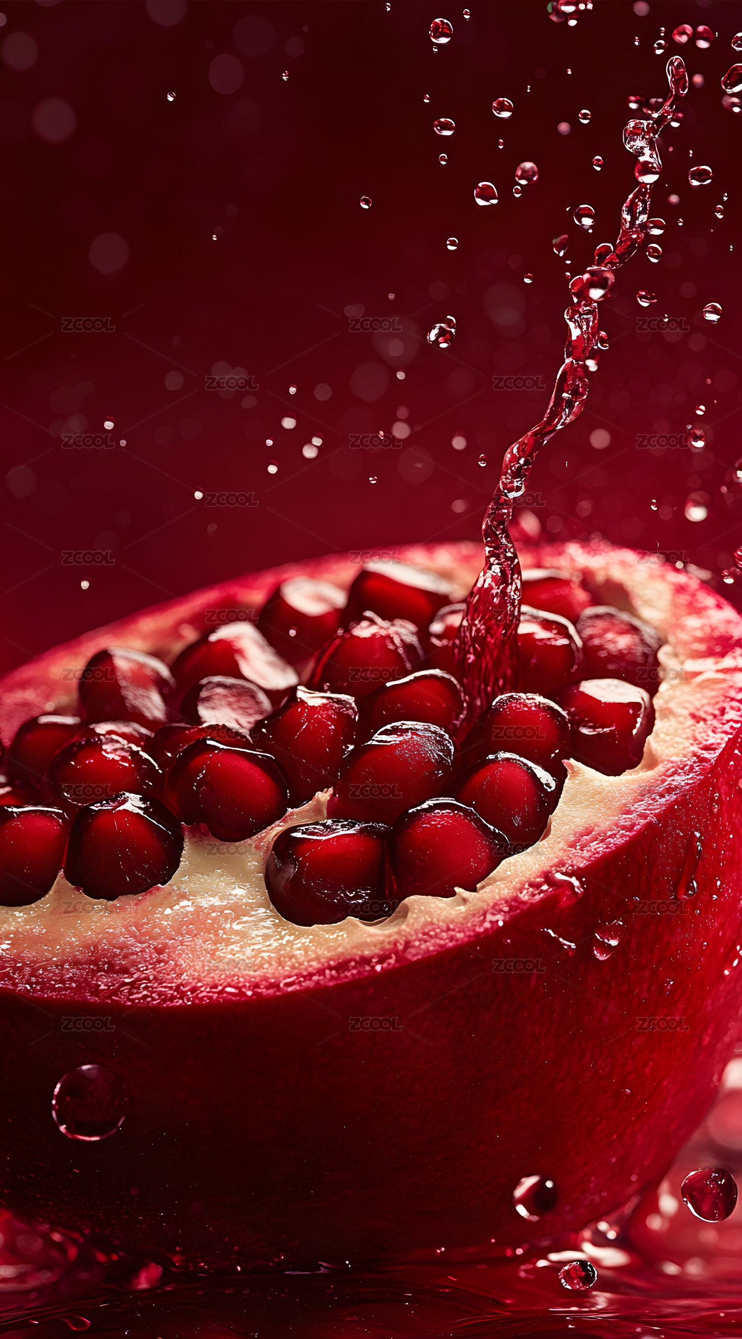石榴,汁水,四溅,红色,果实,晶莹,饱满,鲜艳,美味,甘甜