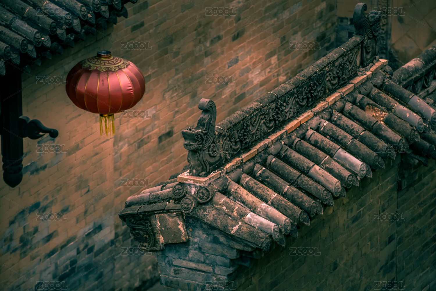 中国山西省武乡县民宅房梁龙兽屋脊装饰建筑