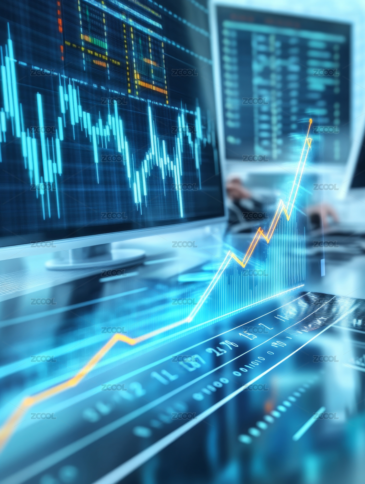 商务人士笔记本股市金融理财3D渲染