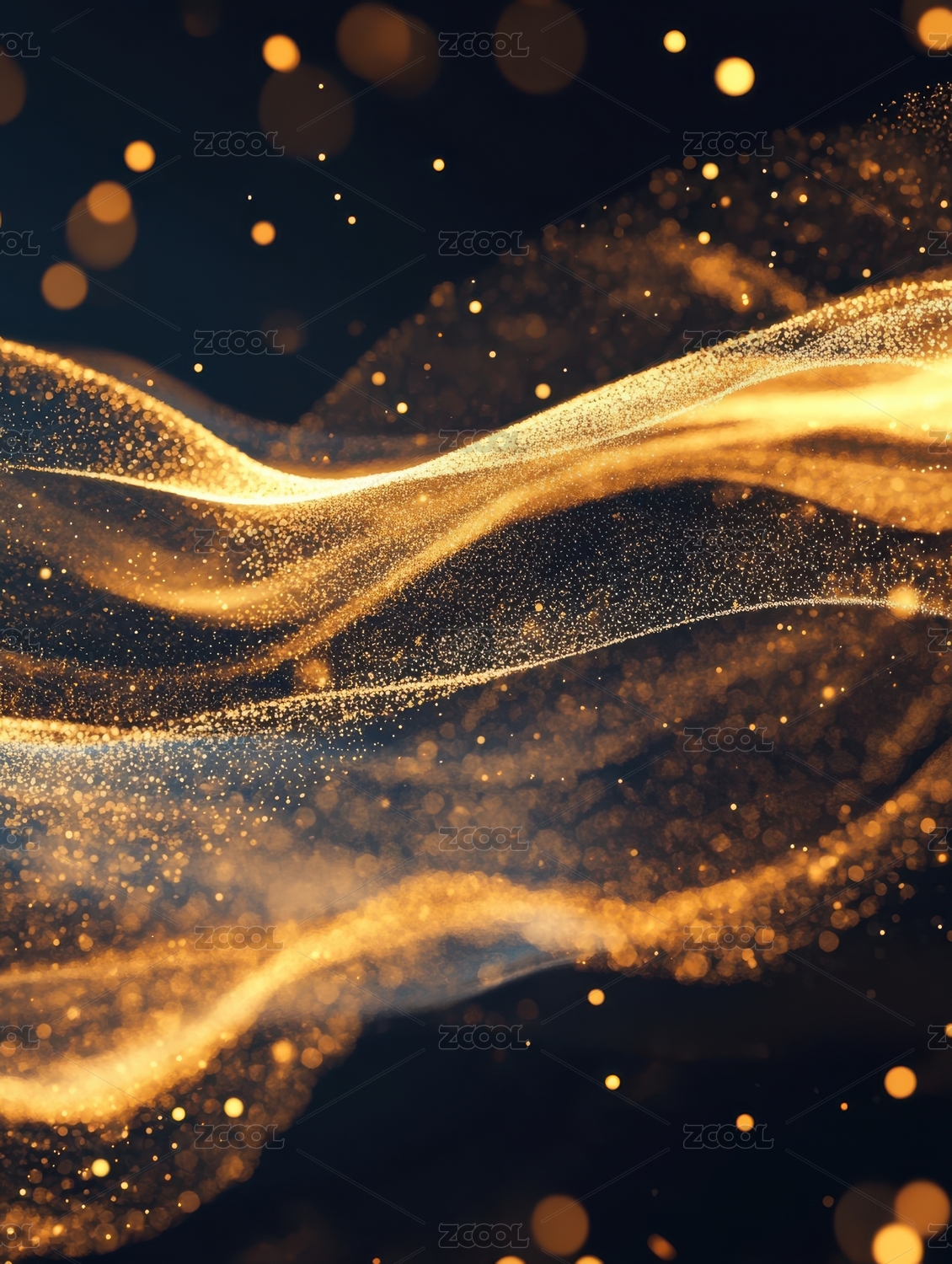 黑色背景上的金色光轨线条耀斑颗粒粒子壁纸