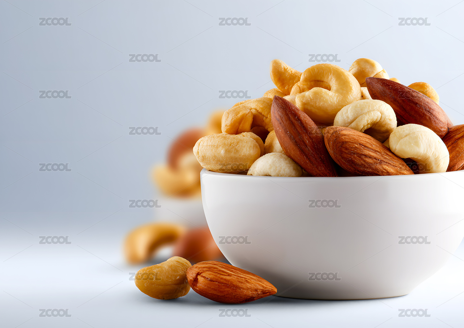 木碗中散落的多样坚果