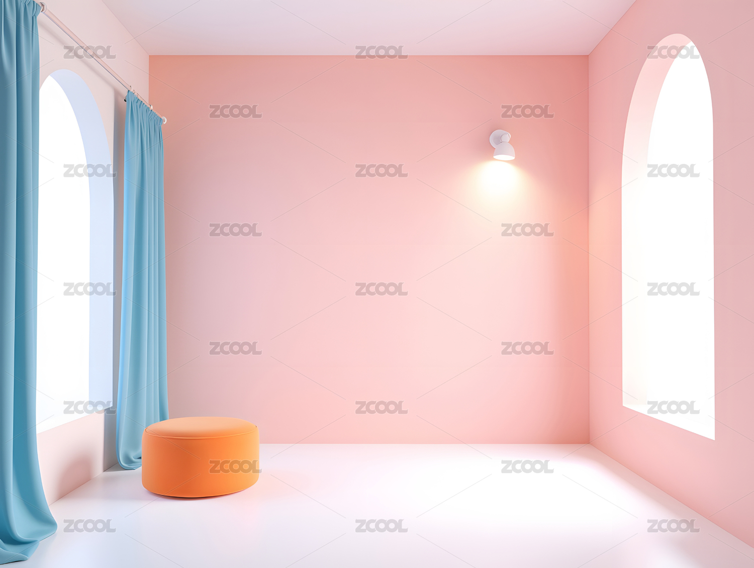 蓝色拱门内的粉色沙发与装饰品