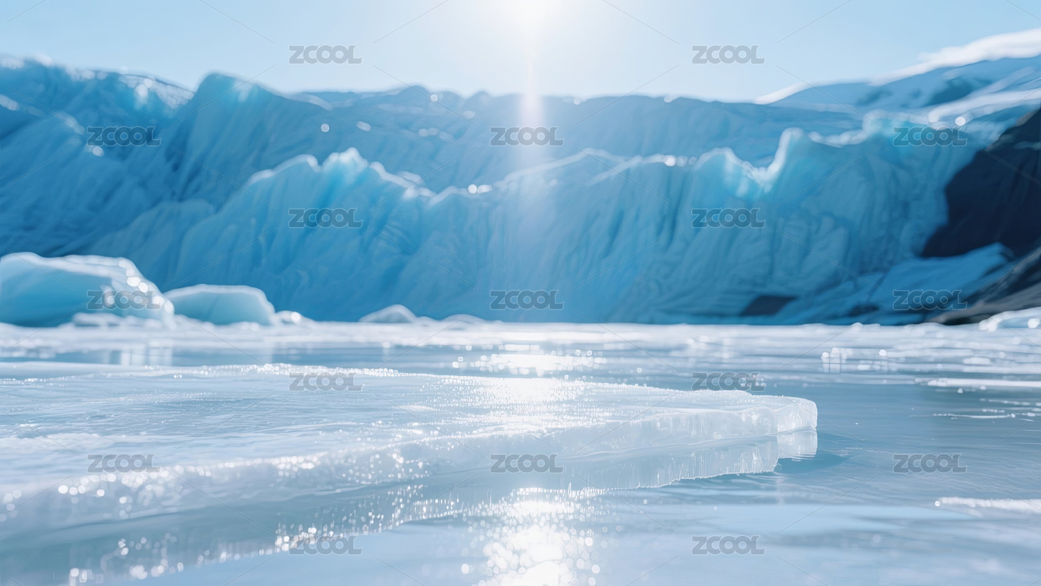 阳光透过冰面展台背景