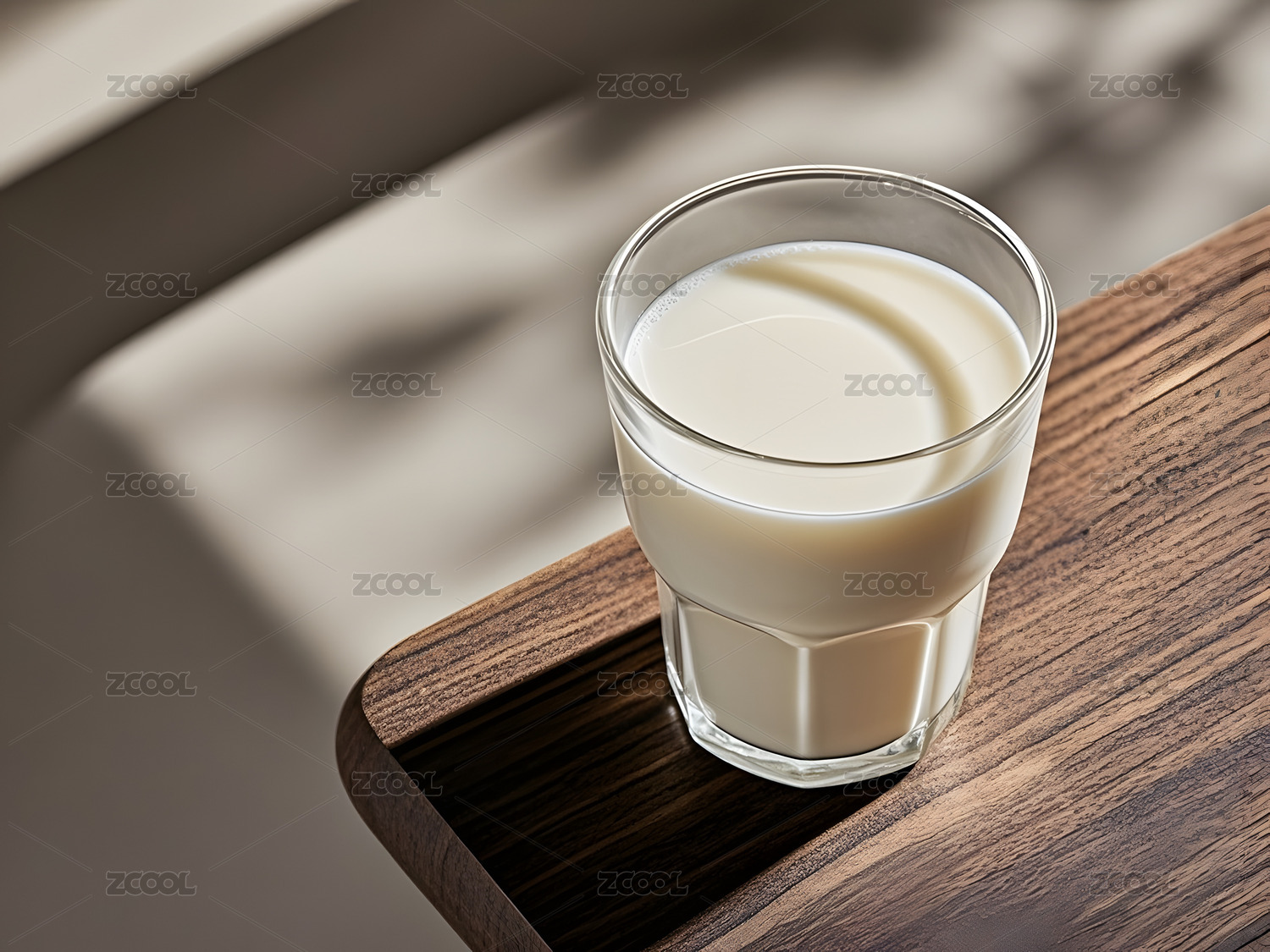白色桌面上的玻璃杯营养儿童早餐奶制品牛奶