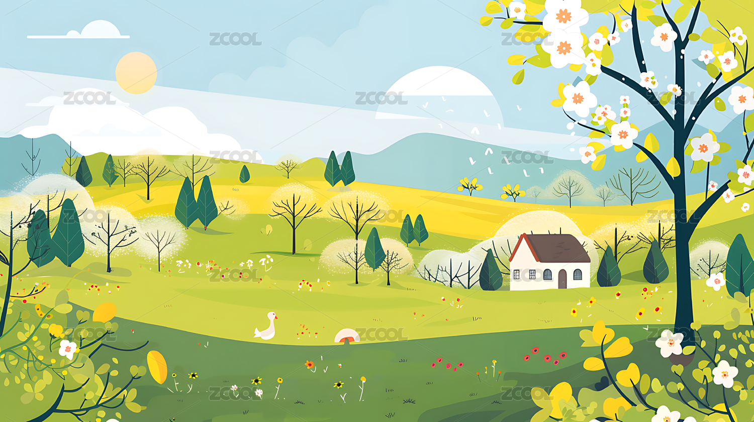 春季风景矢量插画