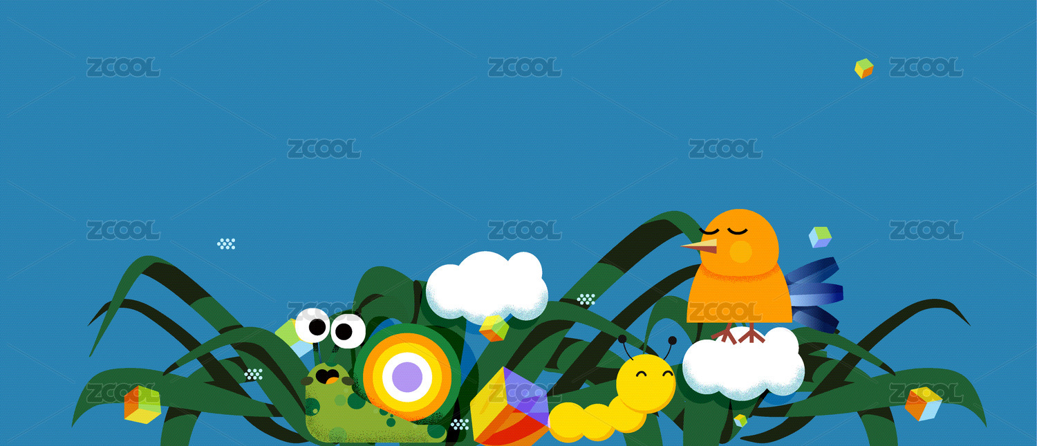 儿童插画池塘小动物