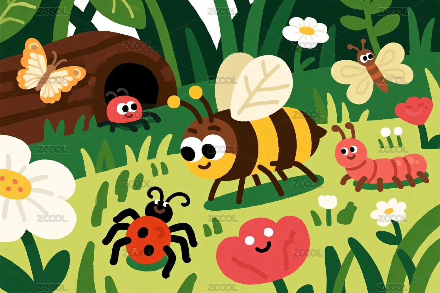 卡通昆虫童话插画