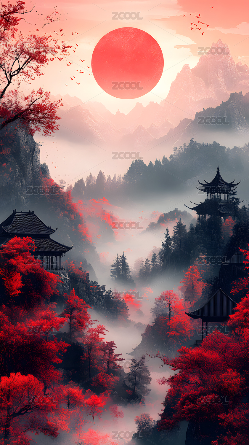 新中式山水插画