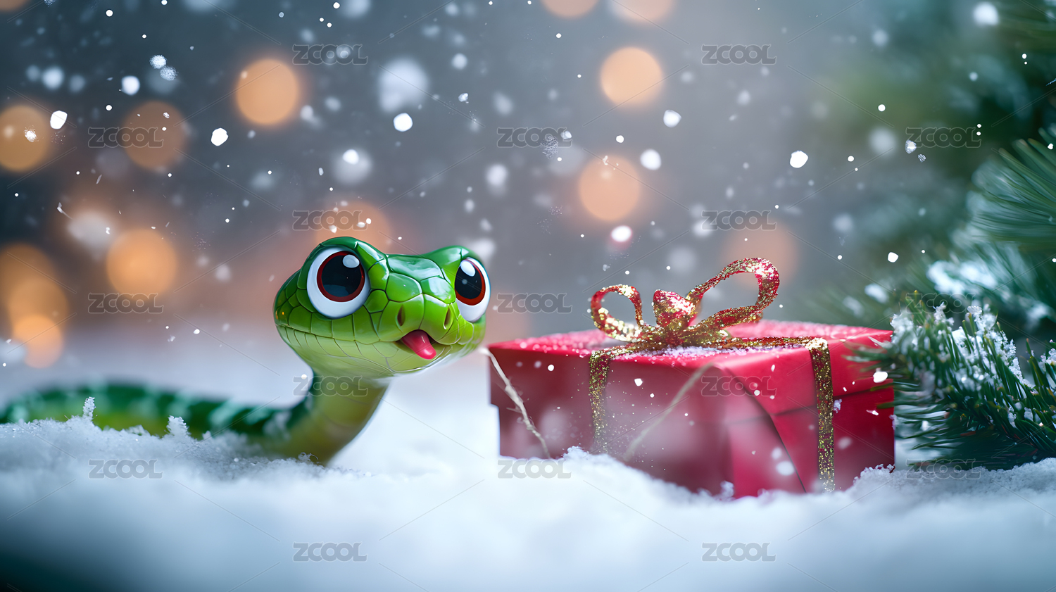雪地绿色蛇红礼盒