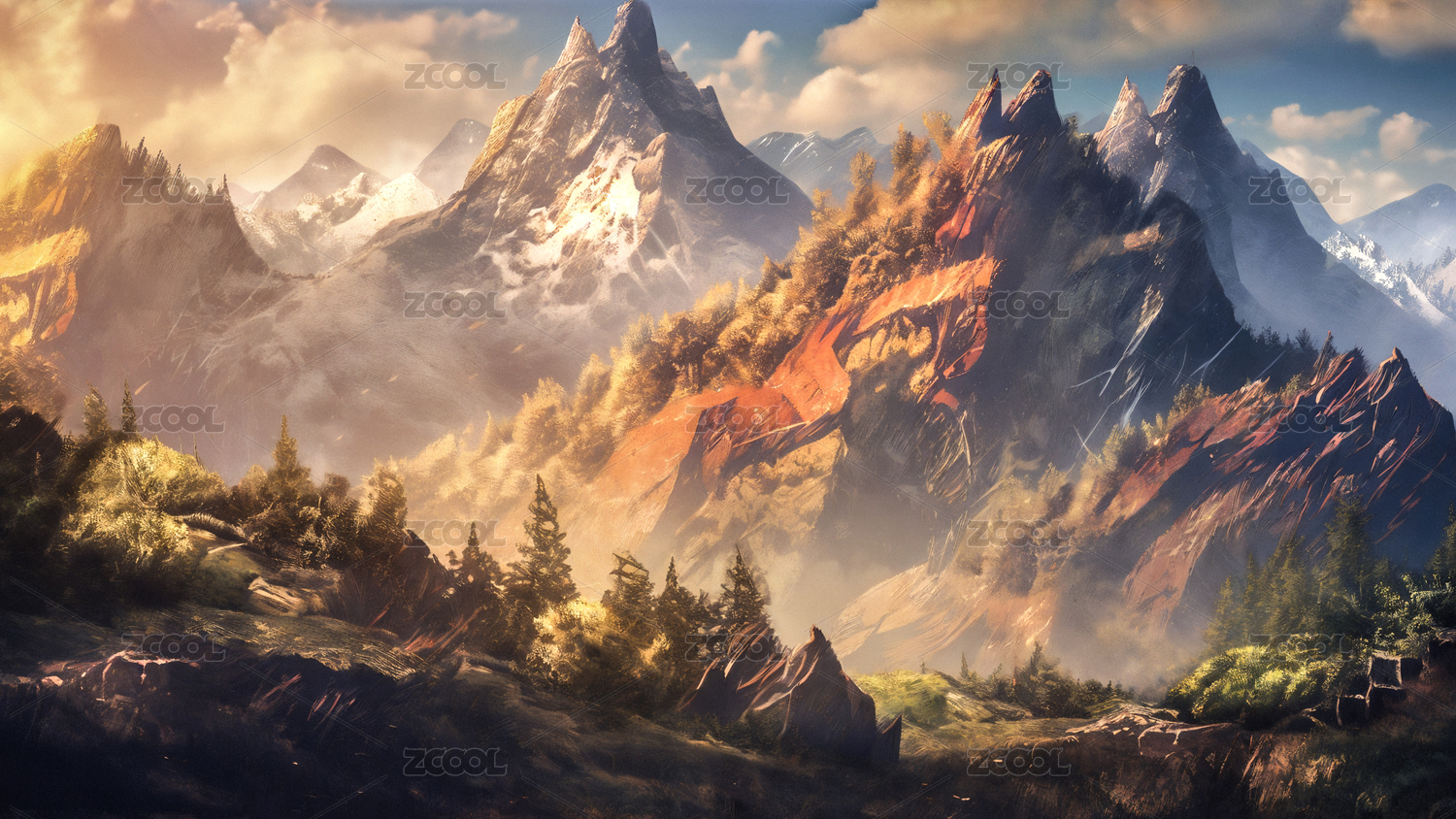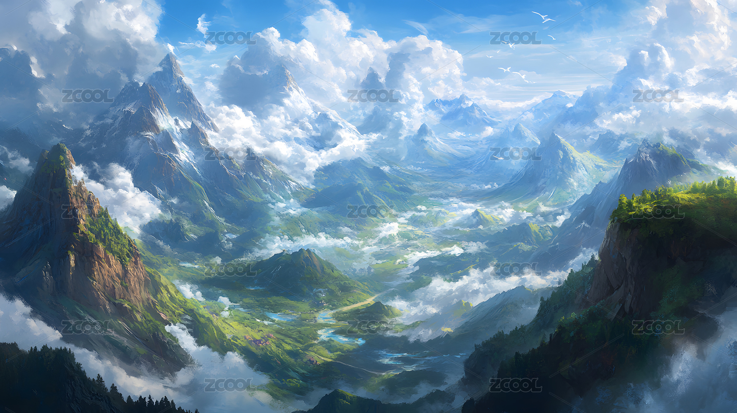 云,天空,风景,幻想,绘画,艺术,奇幻,山脉,自然,户外