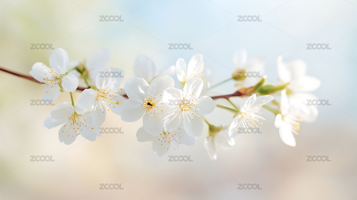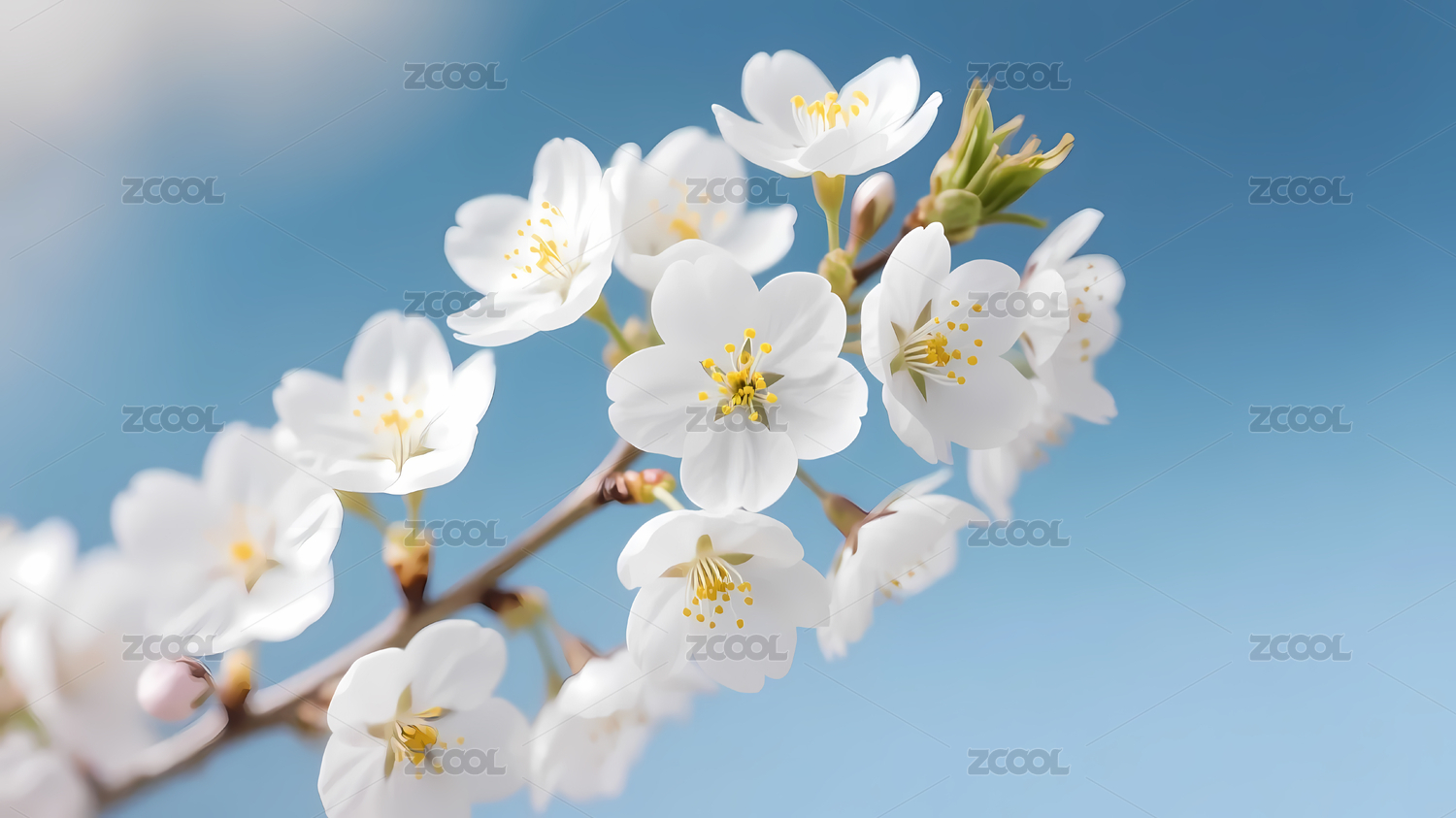 清新自然的白色花朵树枝