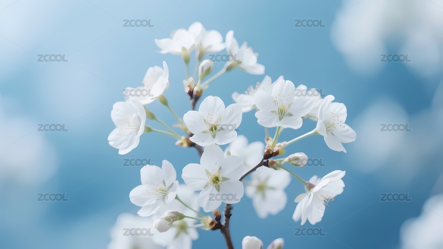 淡蓝渐变白花雪点缀