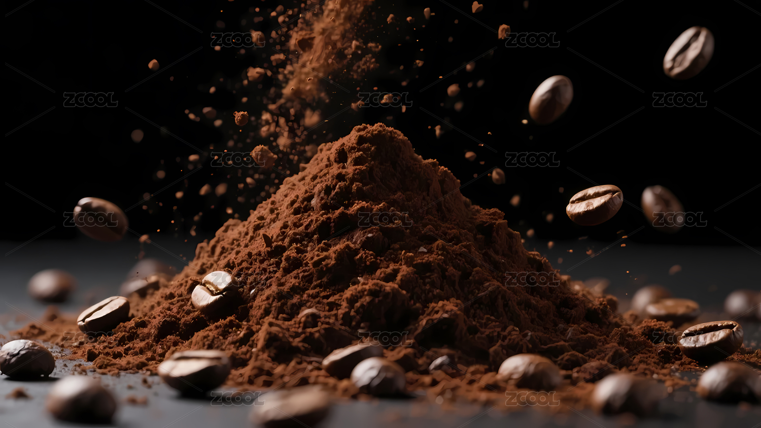 咖啡,咖啡豆,咖啡粉,饮品,飞溅,动态,瞬间,特写,美食,香气