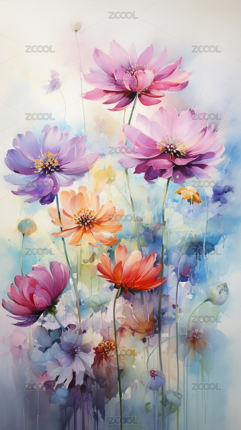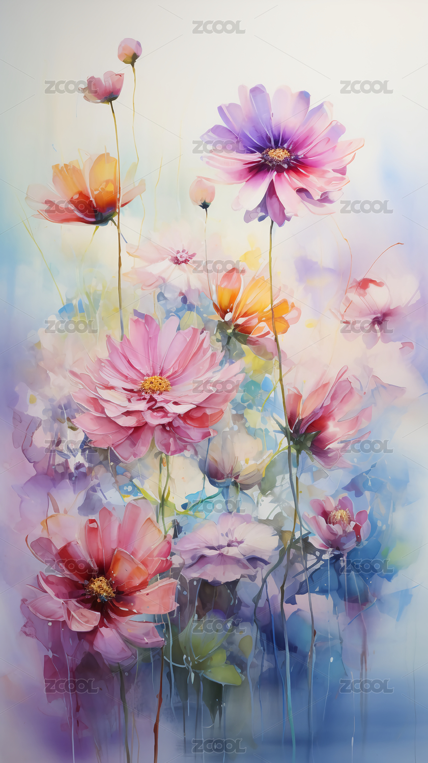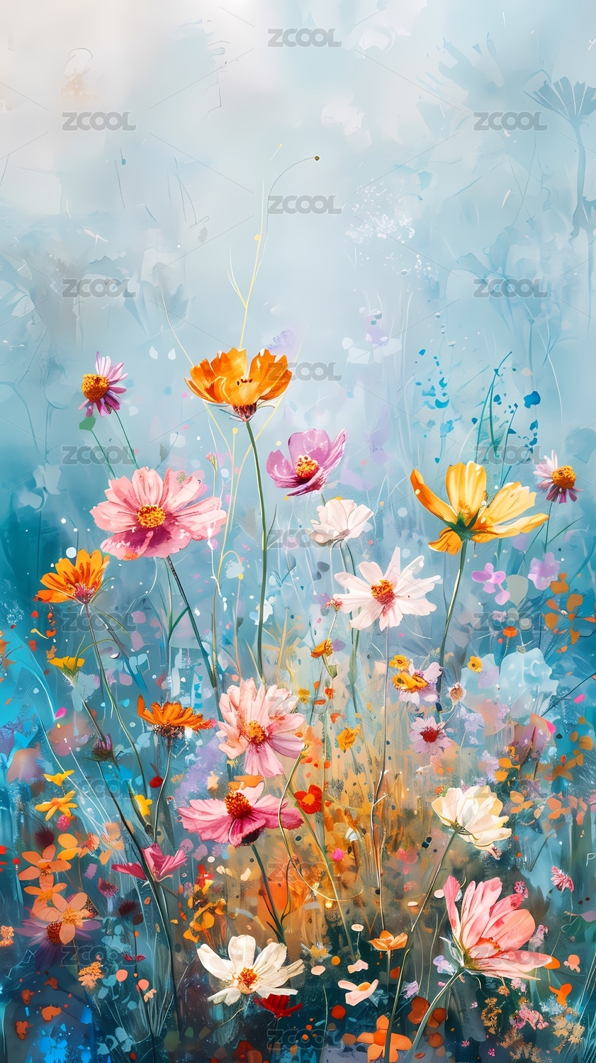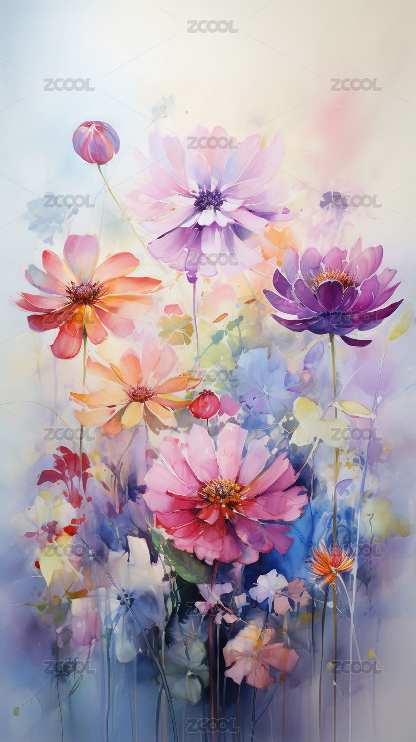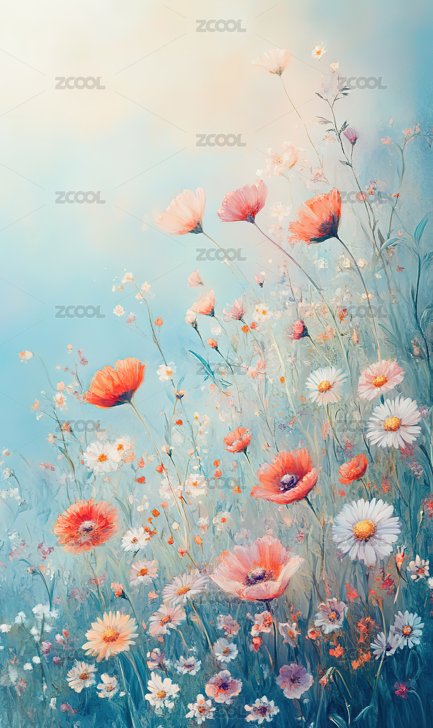 数码复古水彩路边鲜花植物图案抽象海报背景