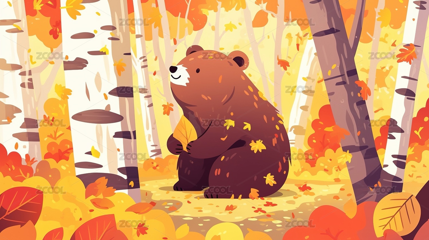 秋叶丛中的小熊
