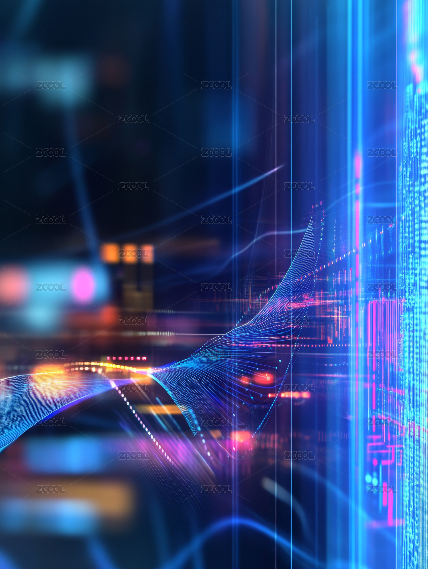 科技,网络,连接,数据,蓝色,线条,抽象,未来,数字,城市