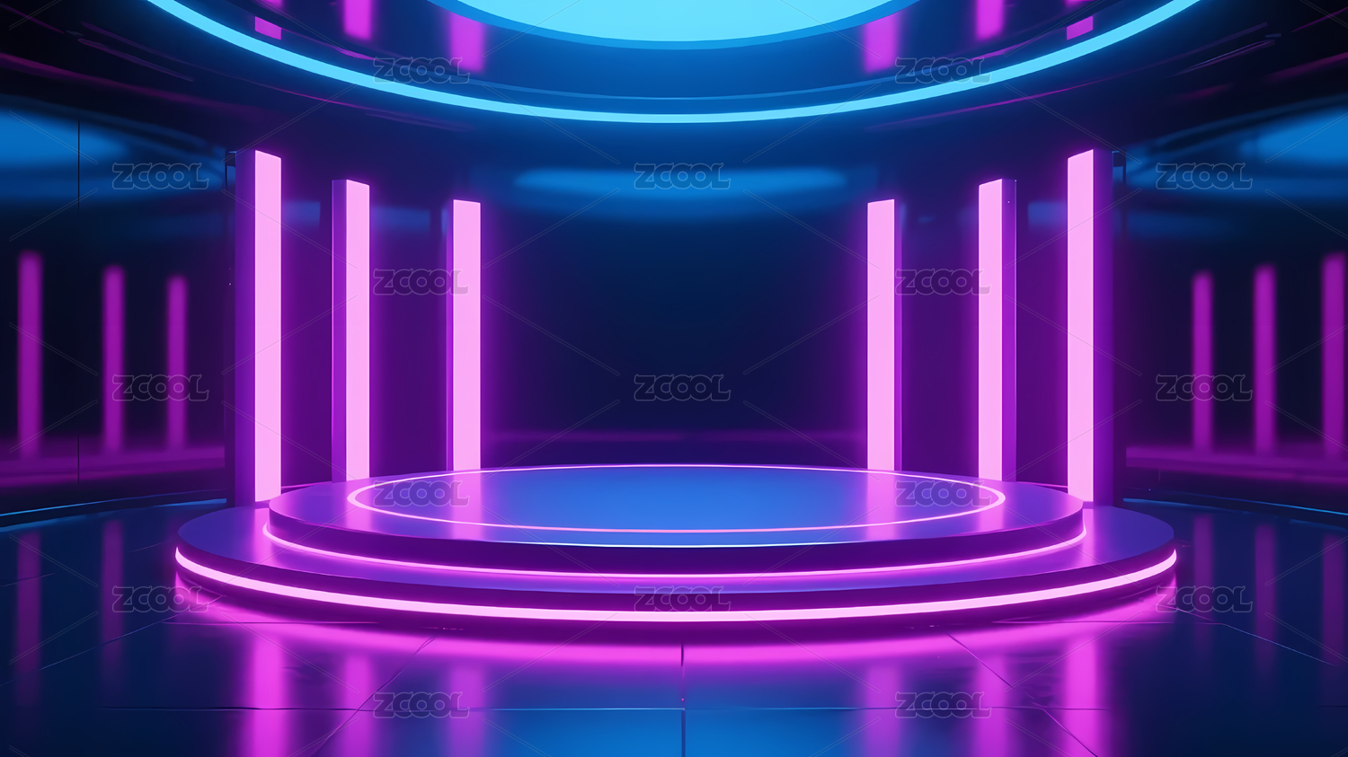 未来感,霓虹灯,舞台,科技,圆形,平台,灯光,效果,现代,设计