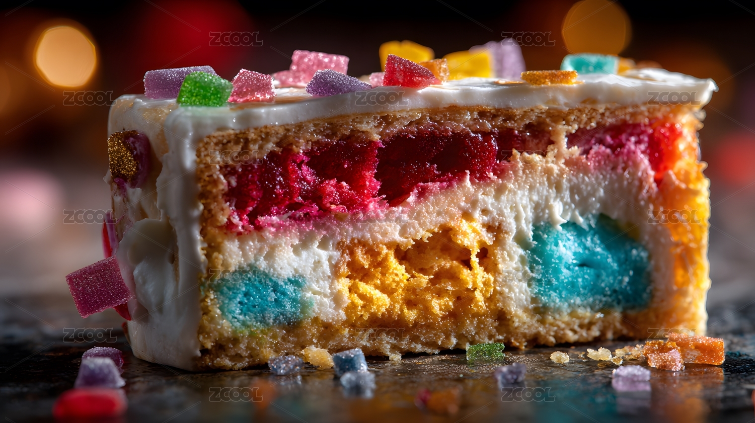 彩虹蛋糕切片特写展示