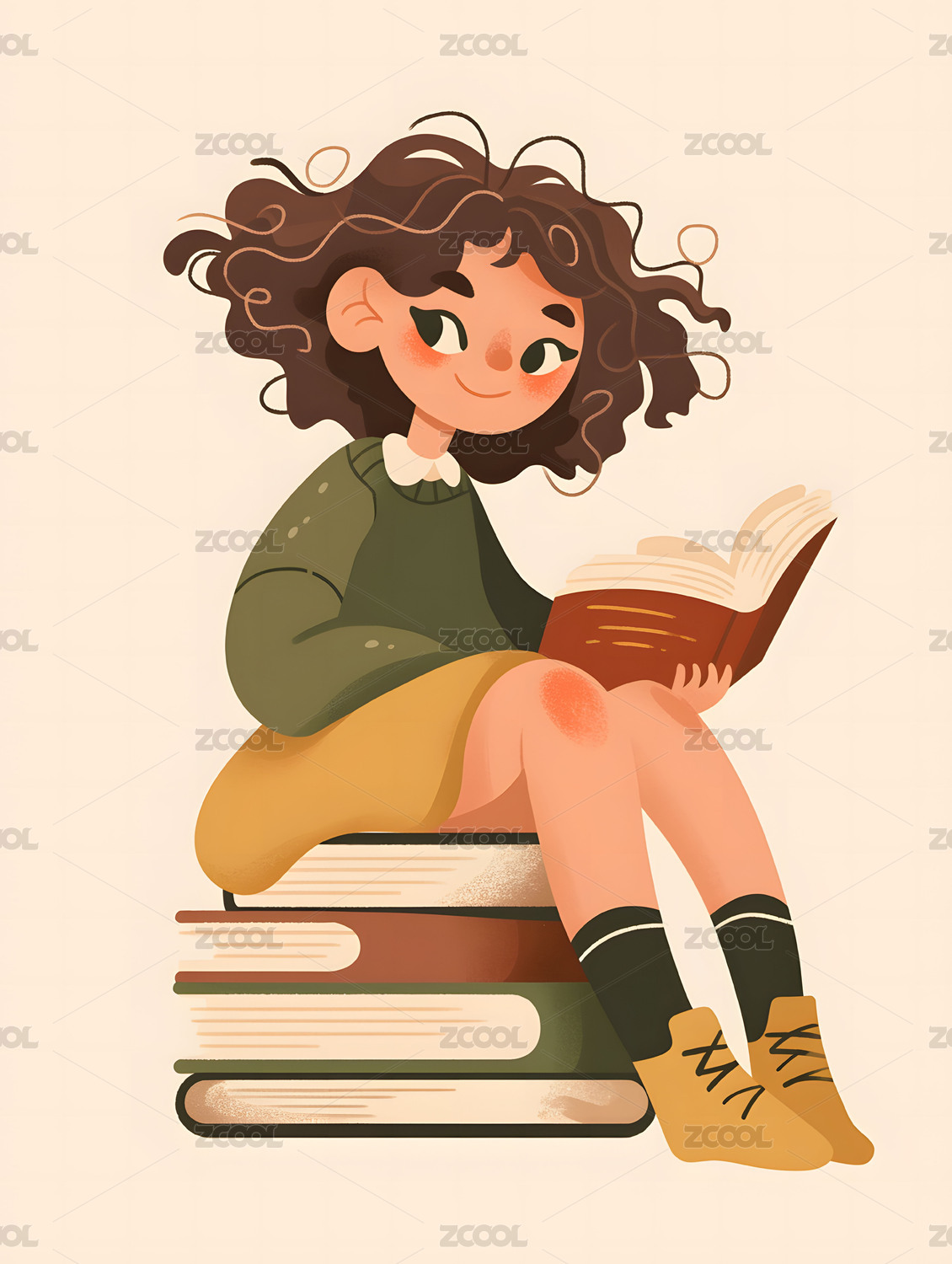 坐在书本上的女孩