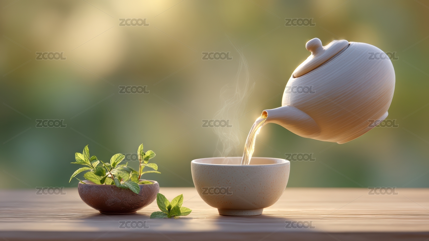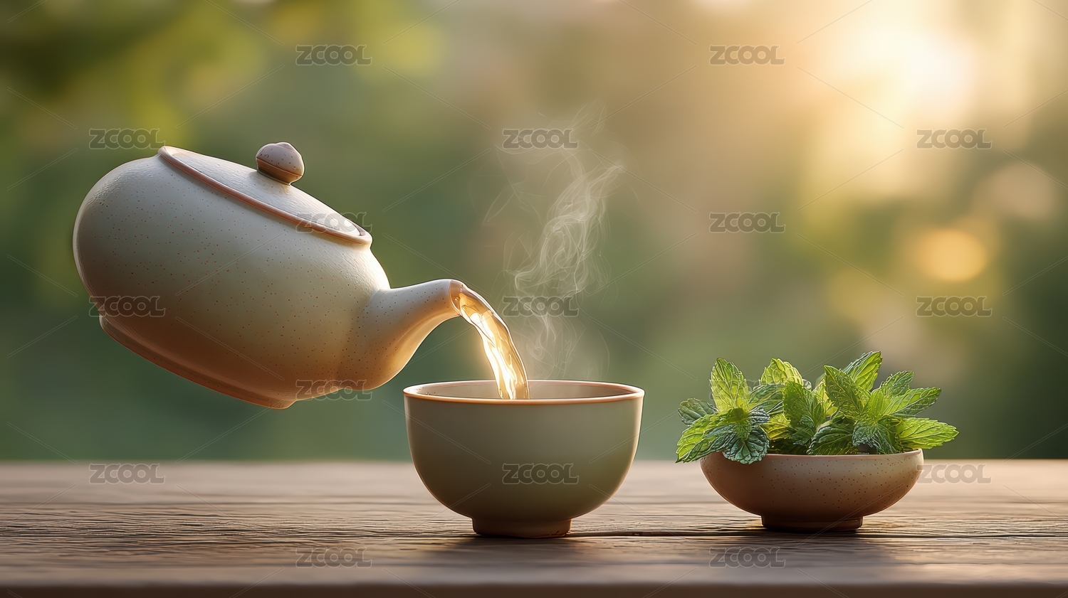 茶壶与茶杯静享自然美景