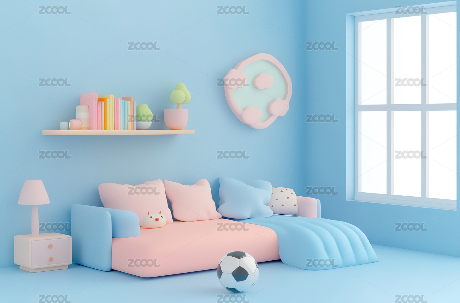室内卧室3D温馨卡通风格三维渲染概念背景