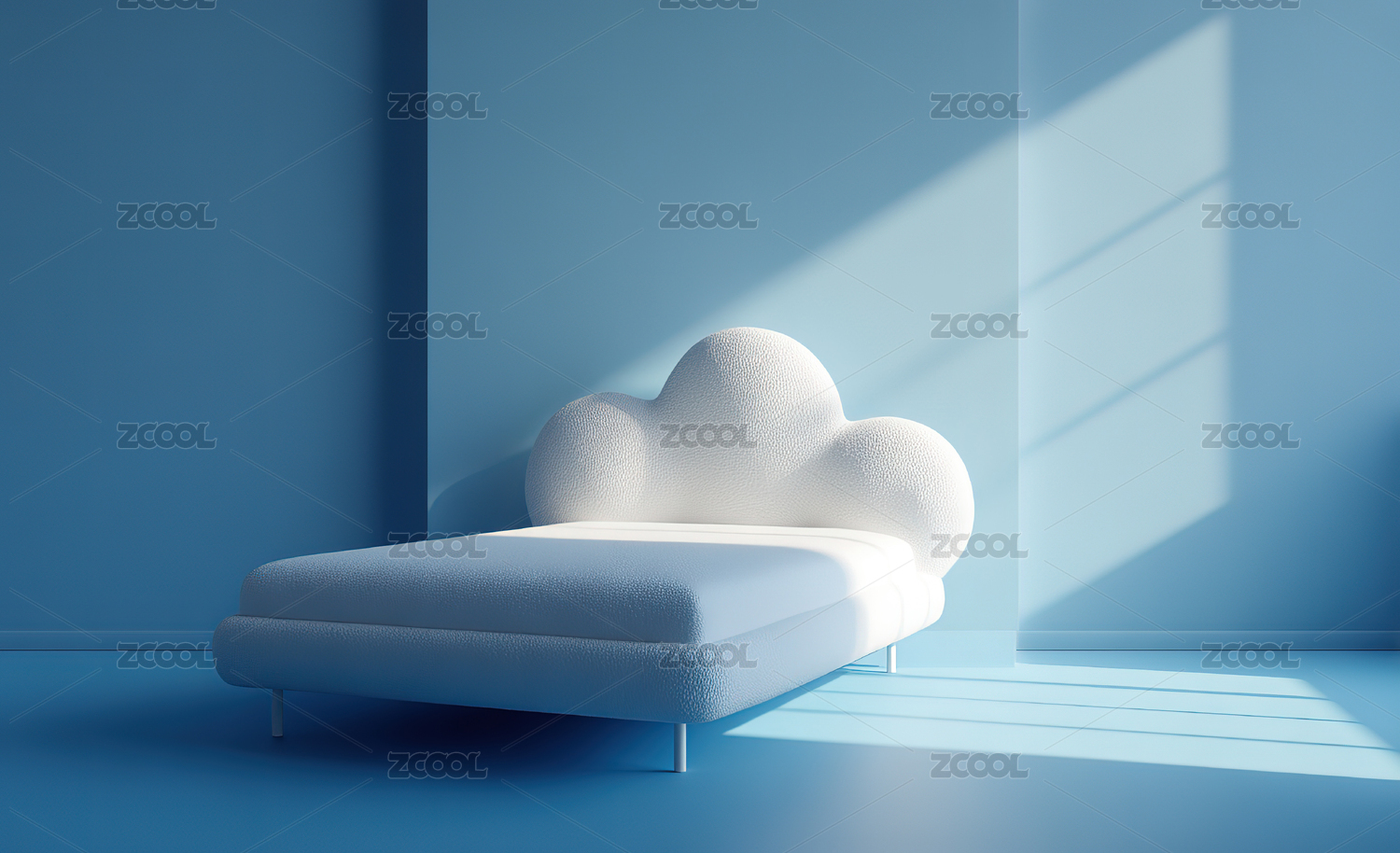 创意,温馨,三维,立体,3D,渲染,背景,床,粉色,云朵